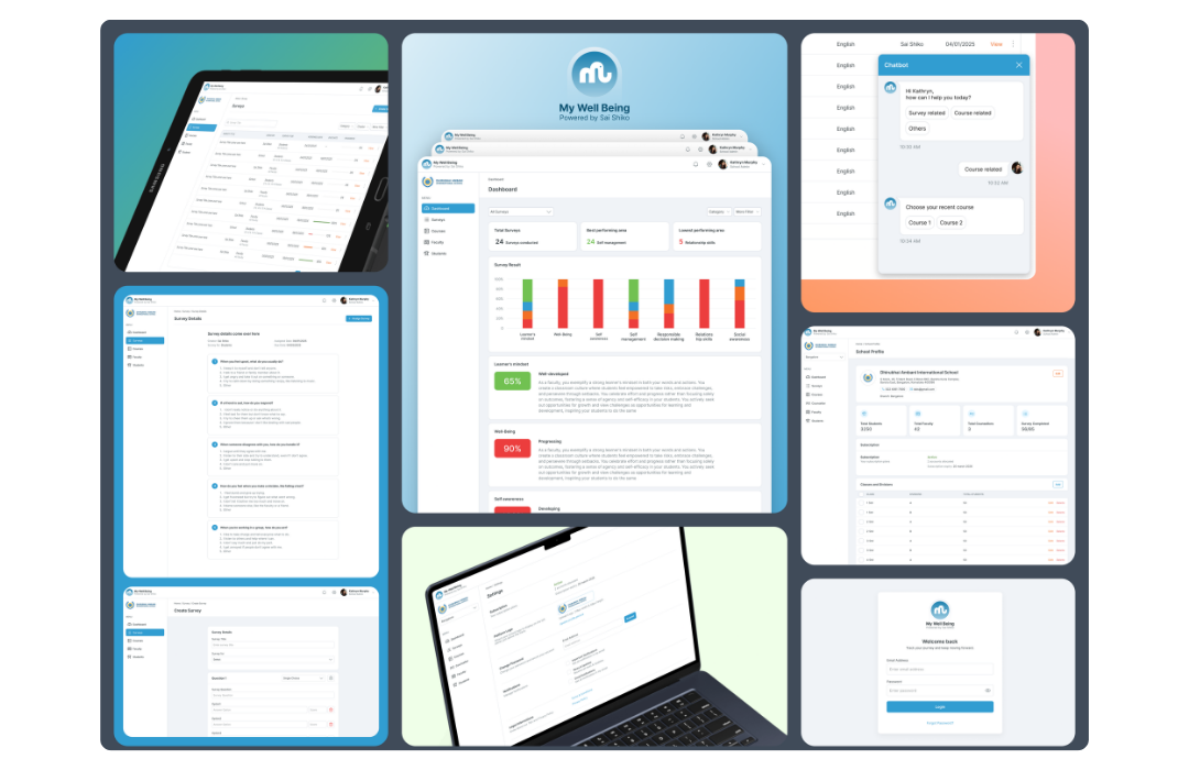 Our tech-enabled, data-led enterprise solution aims to improve mental health outcomes in private and government schools in urban India. This enables schools to run holistic programs to understand mental health and SEL levels of their students and teachers, and design need-based interventions allowing schools to address any gaps.